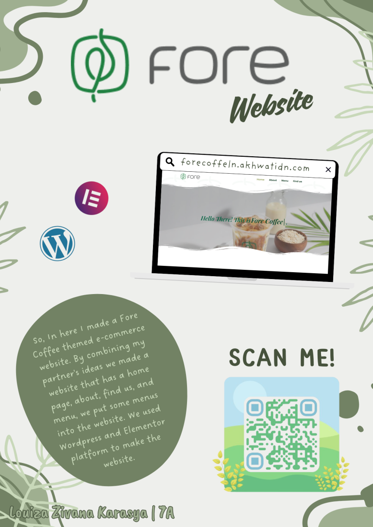 This is my Final Project website, in here I make a website themed Coffee namely Fore Coffee. I make this using WordPress and Elementor. In here there are 4 pages its Homepage, About, Menu, and Find Us!. In here you can see the story of the store, promo that available, testimoni, the location of the store, social media of the store, etc. You can see the website by clicking the button. Thanks for visit the website 🙌