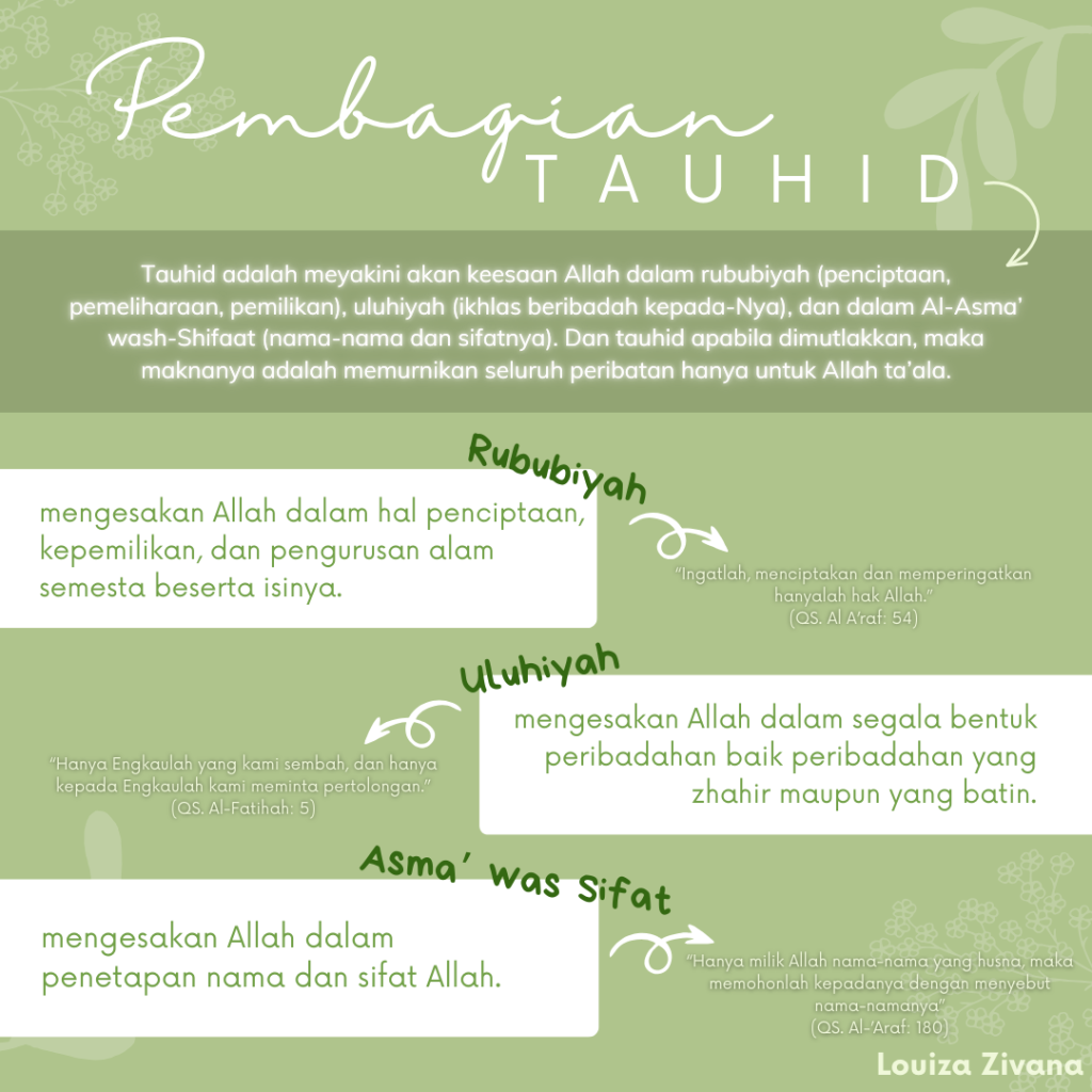 Pembagian Tauhid Pembagian Tauhid is a poster about the definition of Tawheed and also the types of Tawheed.